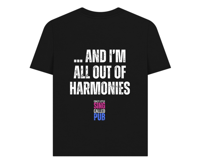 Back graphic reads: "And I'm All Out Of Harmonies."